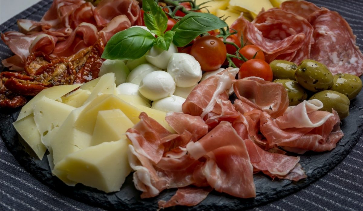 Antipasto di terra con salsiccia al mirto, pecorino e olive