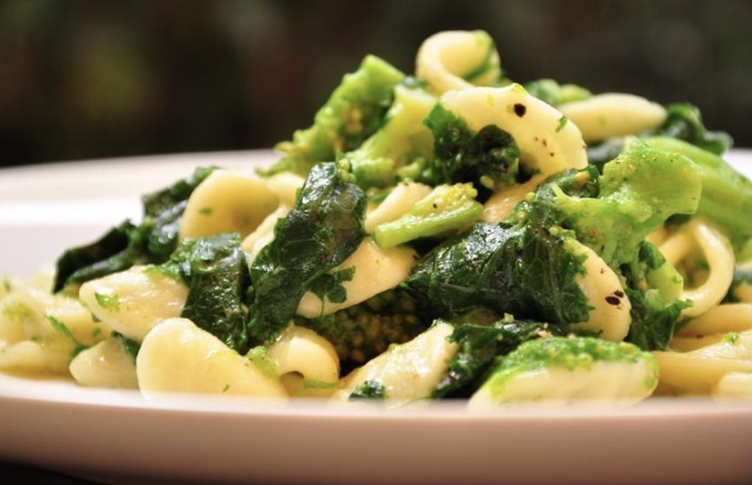 Pasta fresca con cime di rapa saltate con acciughe e peperoncino